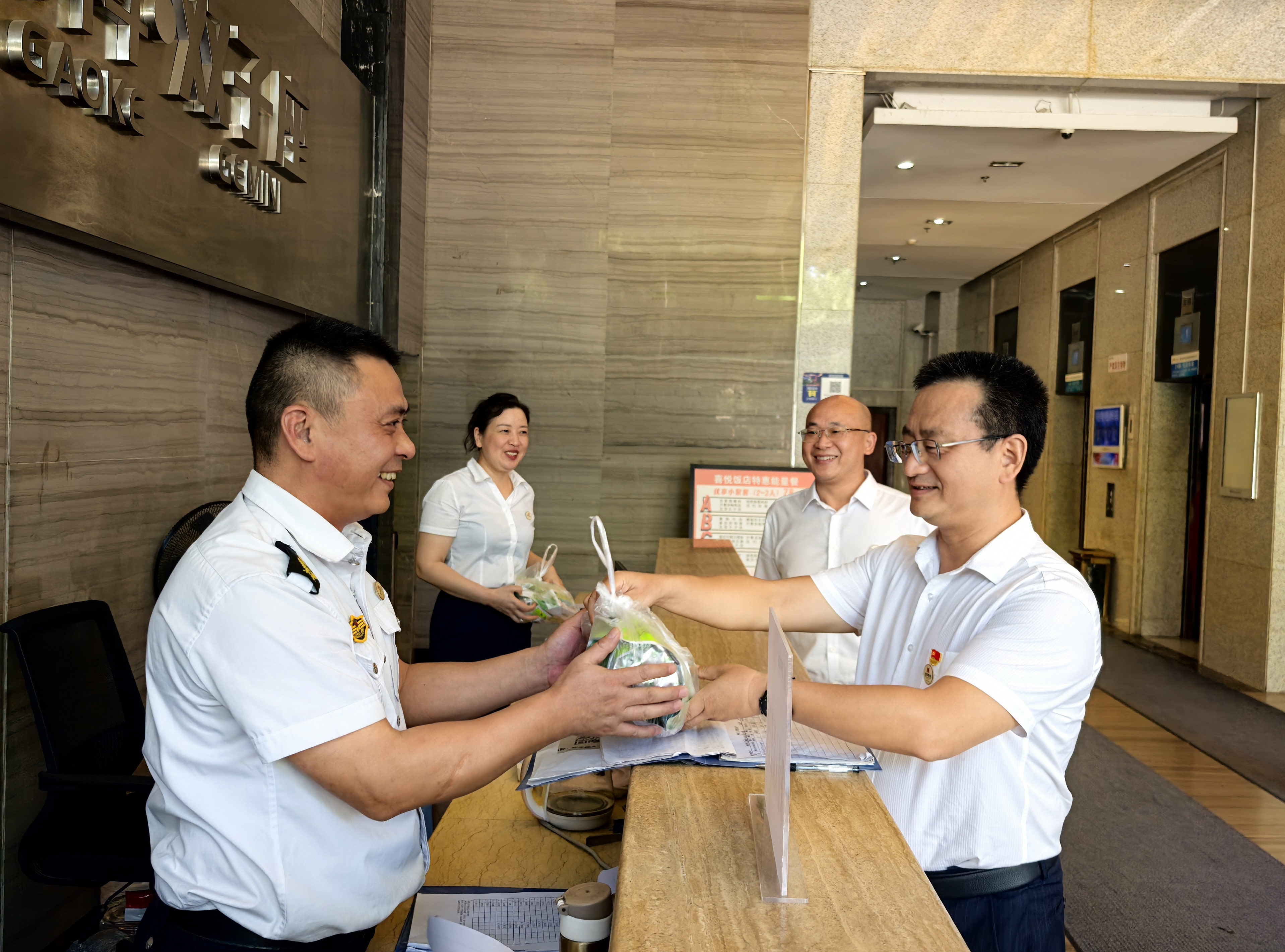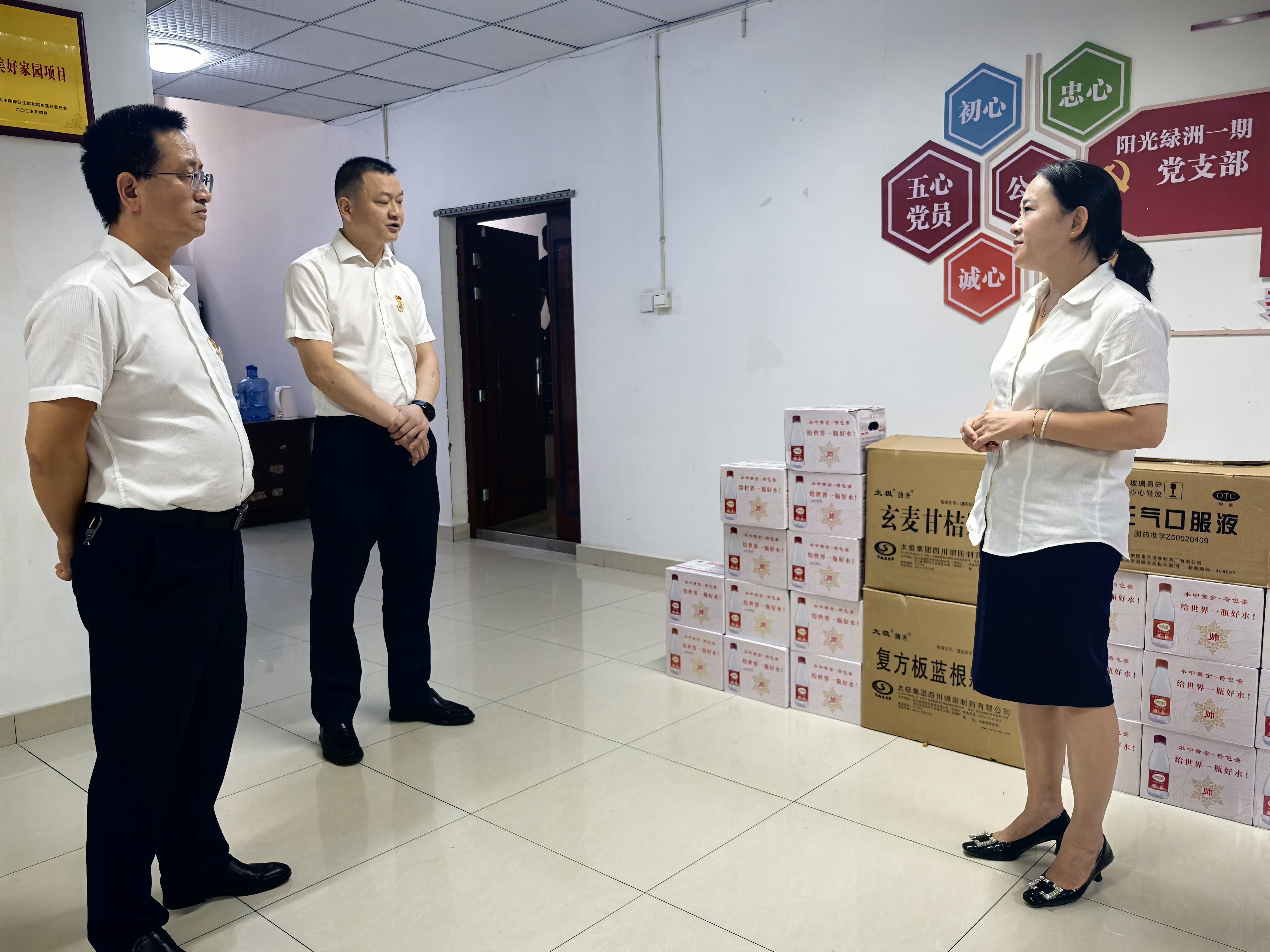 近日,连日高温“烤验”,物业员工不畏酷暑、恪尽职守,始终奋战在工作一线。8月26日至27日,宏声物业执行董事王永刚、总经理舒伟、党支部书记杨军一行深入重庆烟厂、阳光绿洲、宏声大厦、经开区、双子座等项目,开展“情系职工·夏送清凉”高温慰问活动,看望慰问一线工作人员,将丝丝清凉与深切关怀送至每一位坚守岗位的员工身边。